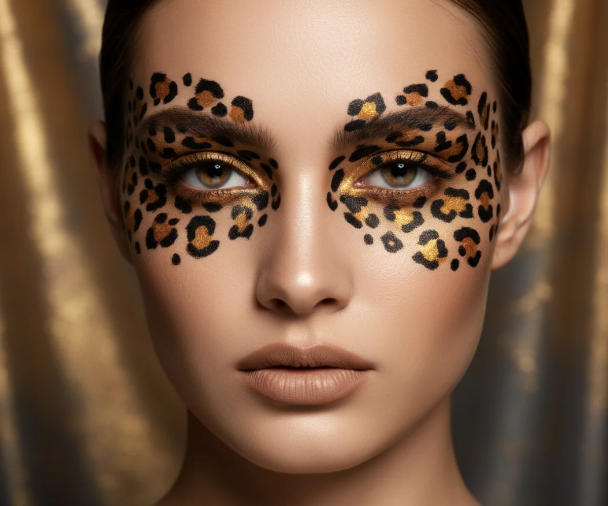 Dare to be different by focusing your cheetah print below the eye. After concealing and setting your under-eye area, use a creamy beige or light gold pencil as a base along the lower lash line. Then, with a fine brush and gel liner in brown or black, delicately draw a scattering of cheetah spots. This creates an unexpected and playful pop of pattern that peeks out subtly. It’s a fantastic choice for festivals or creative photoshoots, especially when paired with a simple upper lid and soft lashes.